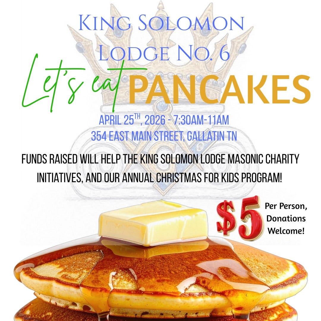 Nashville Valley Scottish Rite Luncheon Club meets at 11 A.M. at American Legion Post #88 at 2717 McCampbell Ave, Nashville, TN 37214